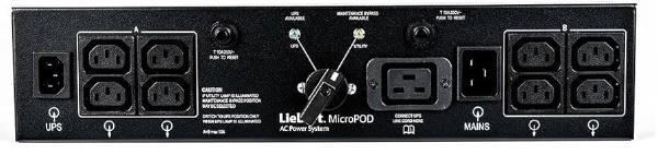 The Vertiv Liebert MP2-220L Micropod maintenance bypass and Power Output Distribution (POD) switch allows you to manually transfer connected equipment to utility power through a maintenance bypass switch, enabling scheduled maintenance or UPS replacement without interrupting power to critical loads. This product is designed for the Liebert GXE3-3000IRT2UXL and GXT5-3000IRT2UXL UPS systems, offering a flexible, plug-and-play connection for both input and output. Its easy-to-use rotary switch and indicators make operation simple, while the improved availability feature ensures that utility power can be routed to attached equipment during UPS maintenance or replacement.